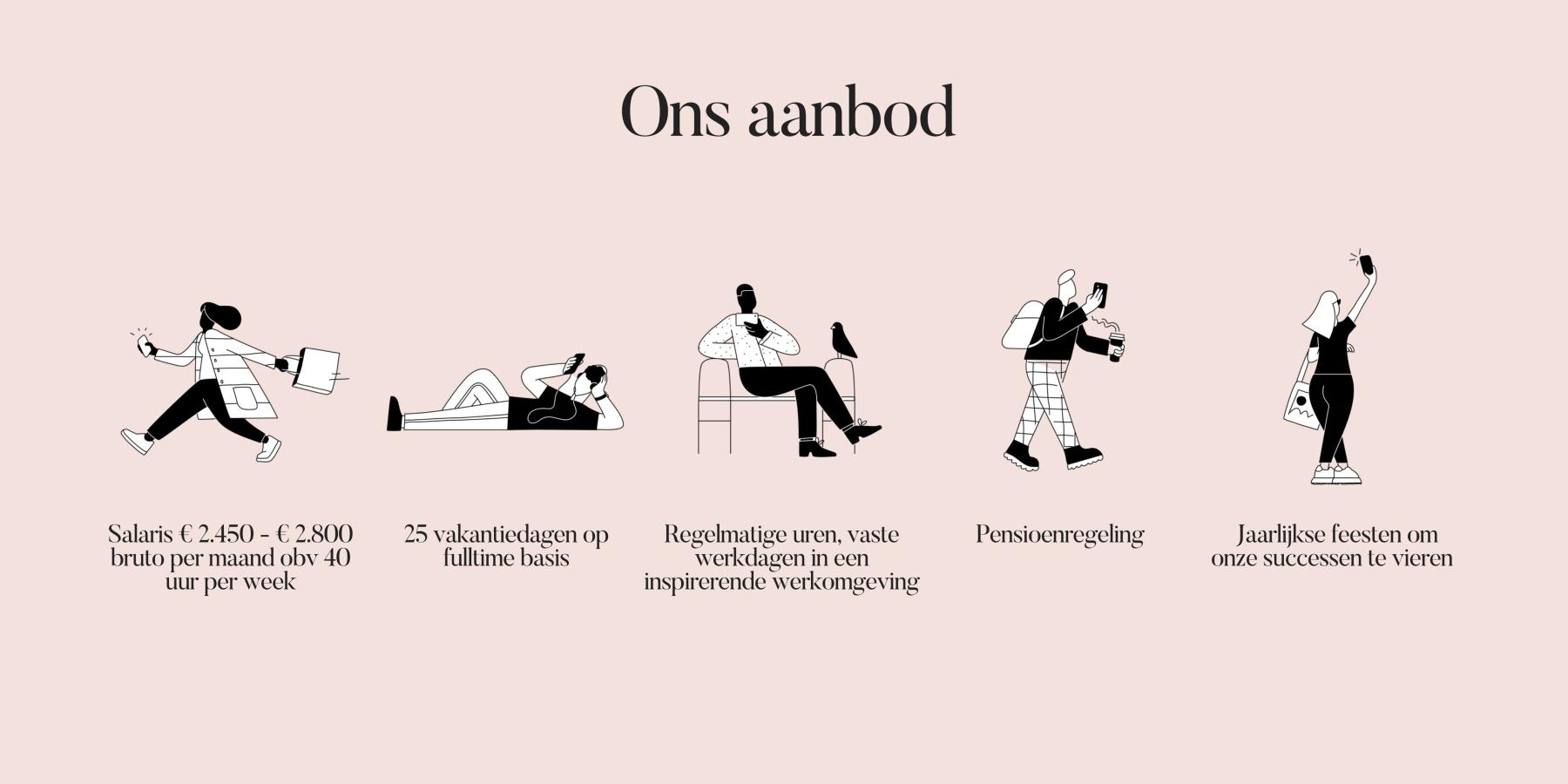 Salaris tussen € 2.450,- en € 2.800,- bruto per maand (op basis van 40 uur, afhankelijk van ervaring).